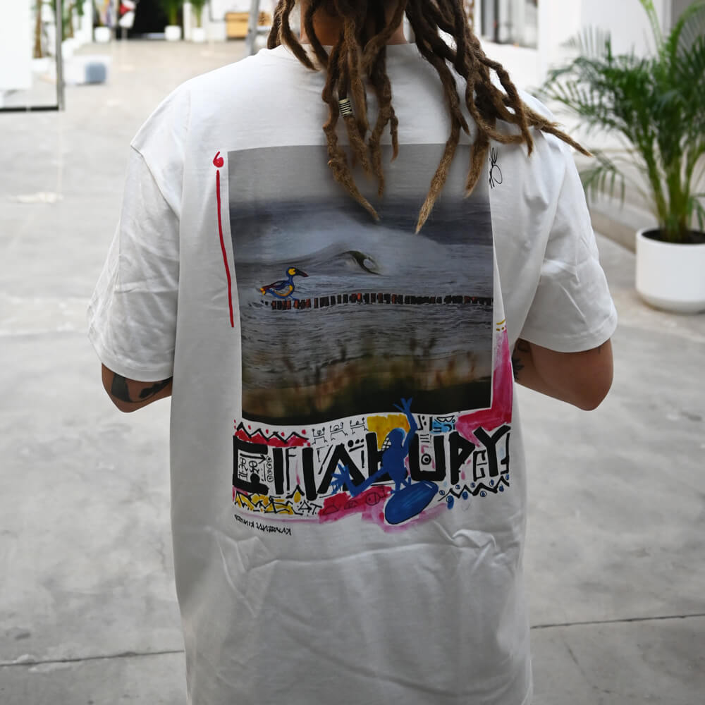 Dominik Jan Gralak, surfer i awangardowy artysta, podjął się obróbki zdjęcia z ogromnym szacunkiem do fotografii Krzyśka, tworząc unikatową grafikę oraz oprawę graficzną projektu. Efekt możecie zobaczyć sami - koszulka prezentuje się fantastycznie i dostępna jest w limitowanej ilości.