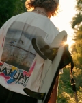 Luźny krój koszulki to tzw. oversize, idealny do codziennego noszenia w modnym aktualnie stylu. Wykonana w 100% z bawełny, gramatura 240g/m2. Oznacza to, że odbieracie mięsistą, przyjemną w dotyku koszulkę, która będzie się długo dobrze nosić. Nadruk został wykonany metodą sitodruku, dzięki czemu wtapia się w materiał i nie czuć go w ręku. Rozmiarówka jest bardzo bogata - od XS do XXL. Najlepiej sprawdzić sobie tabelę rozmiarów dostępną na karcie produktu. Jeśli lubisz luźne koszulki wybierz taki rozmiar jak zawsze, a jeśli wolisz bardziej przy ciele - możesz spokojnie wybrać rozmiar mniejszy. My nosimy się luźno, także bierzemy sobie koszulkę w tym rozmiarze co zawsze na tzw. rapie. Dominik - model na zdjęciach ma koło 190cm wzrostu i nosi rozmiar XL.