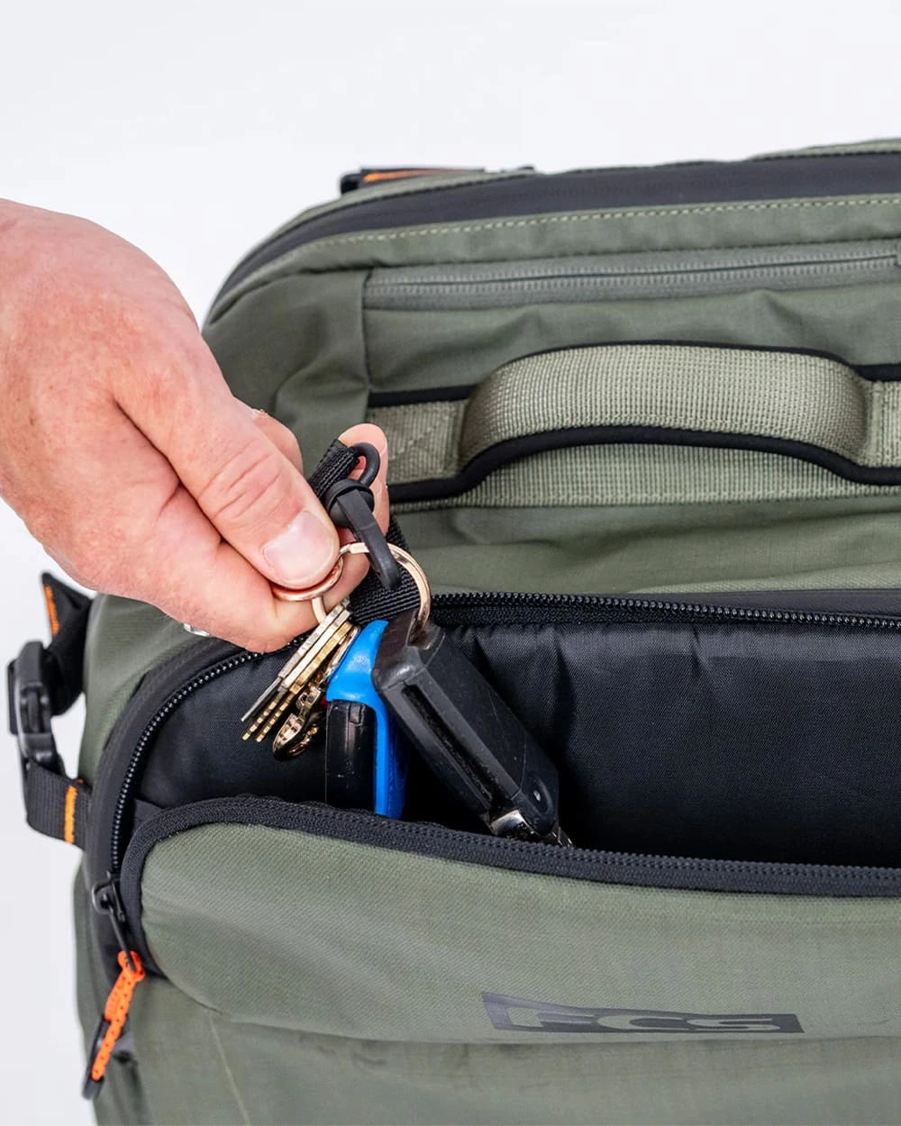 Nowością w plecaku FCS Mission jest system łączenia Modulink, który pozwala na podpięcie plecaka do walizki FCS Mission Wheely lub pokrowca z tym systemem. Działa to w dwie strony, bo opcjonalnie do plecaka można dokupić Dry Bag, który bezproblemowo można podczepić od frontu.